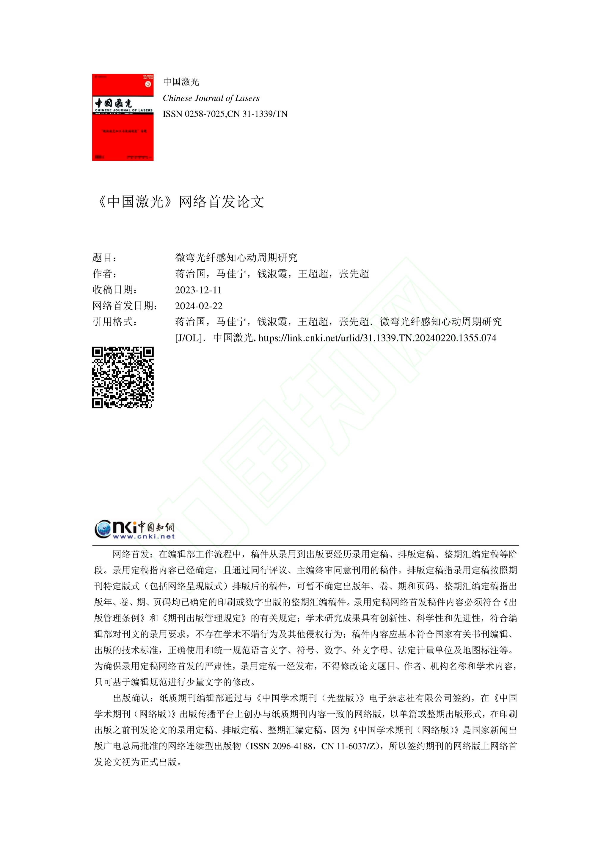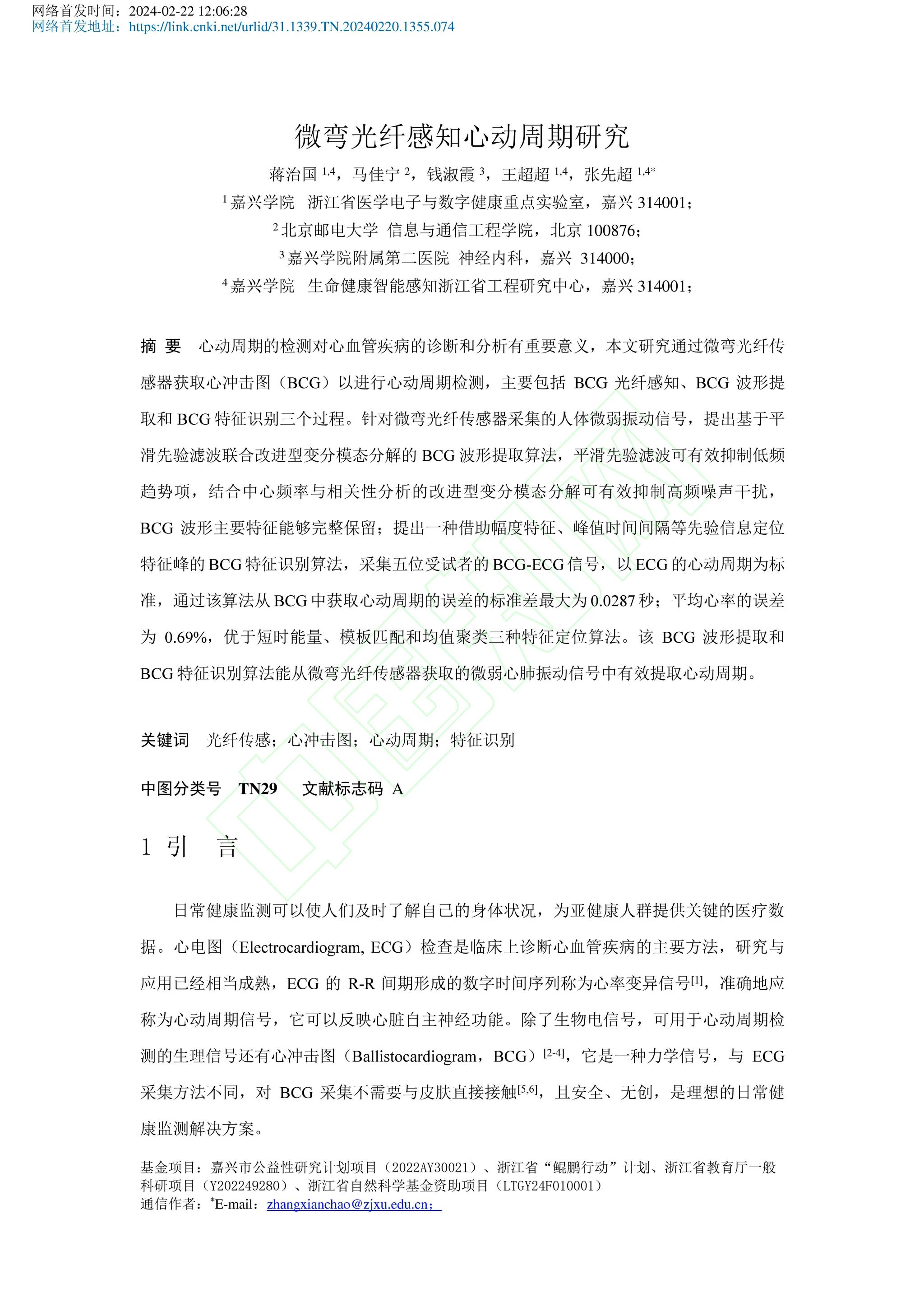 【论文】蒋治国、王超超、张先超等,微弯光纤感知心动周期研究
